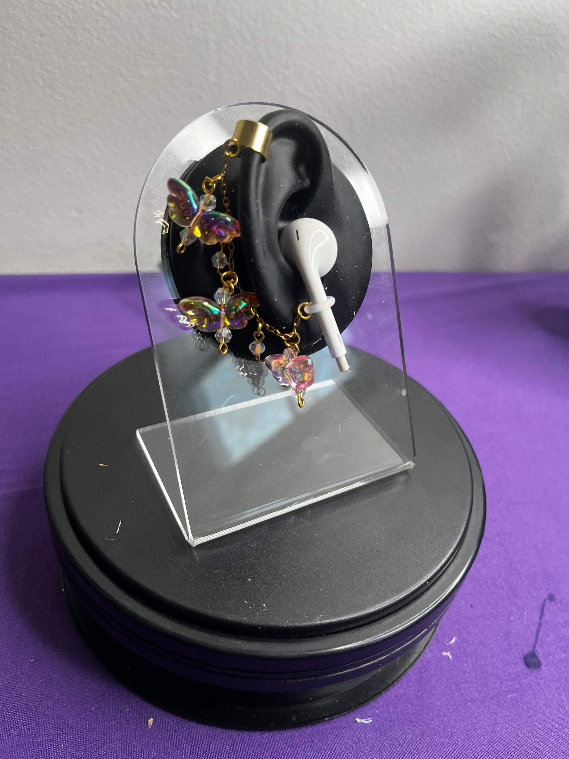 Earbud cuff's are made by hand, this set is made up of iridescent acrylic angel wings and beads. Angel wing colors are chosen at random (blue, pink, and peach), feel free to leave a note if there's colors you'd like to see in your set!