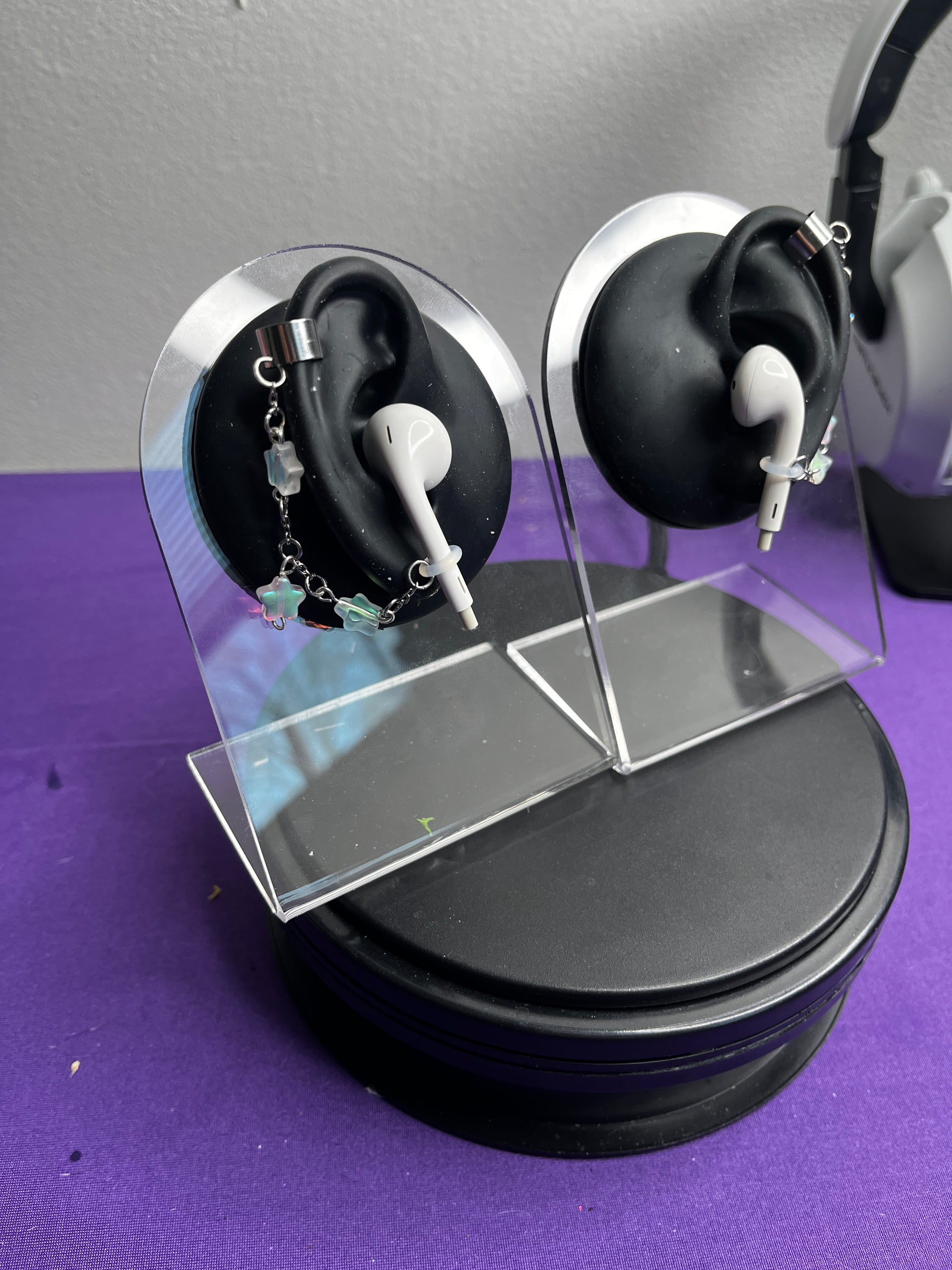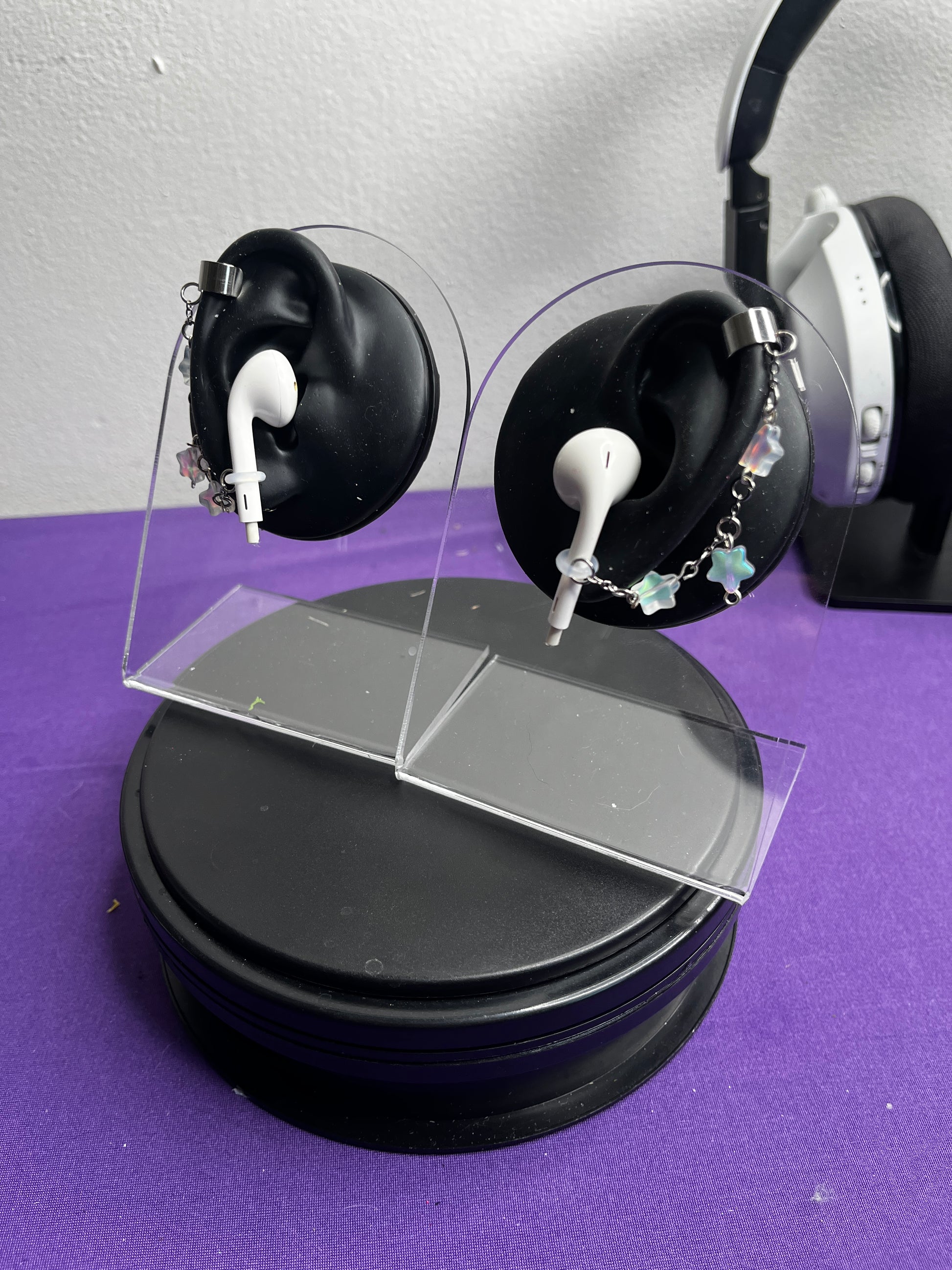 Earbud cuff's are made by hand, this set is made up of iridescent acrylic stars!